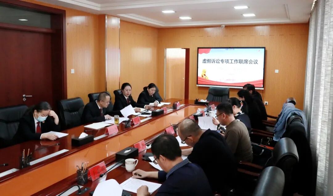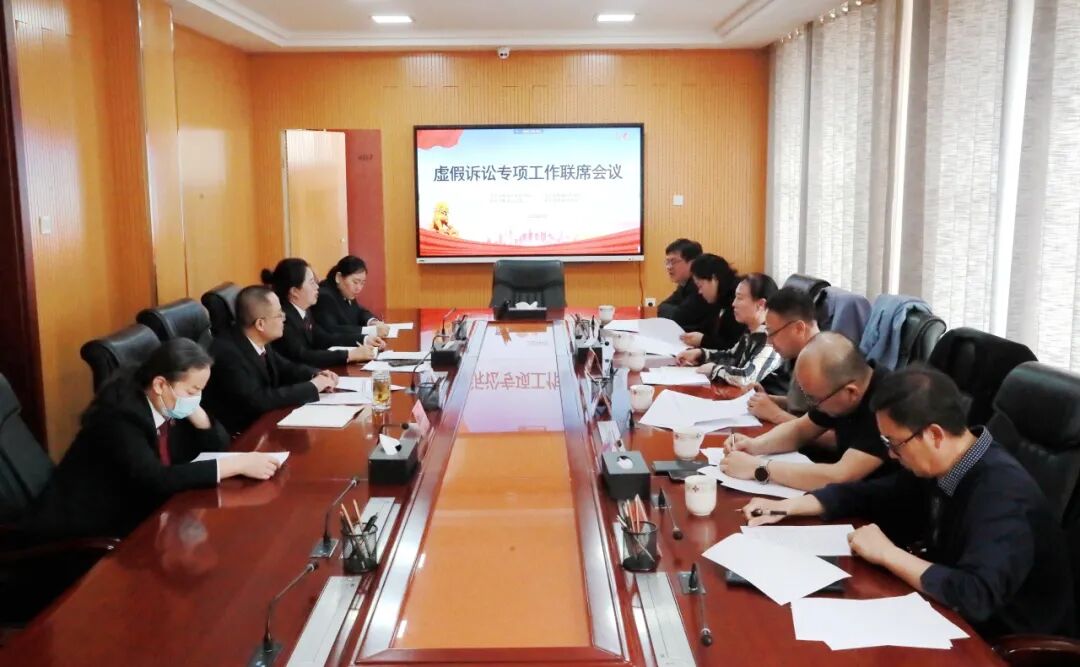 为深入贯彻落实最高人民法院、最高人民检察院、公安部、司法部《关于深入推进虚假诉讼专项监督行动的通知》精神,持续深化虚假诉讼综合治理,维护司法权威和群众合法权益,4月23日,克旗检察院统筹组织旗公、检、法、司召开持续推进虚假诉讼专项监督行动联席会议,相关单位分管领导及业务部门负责人参加会议。会议通报了近年来克什克腾旗虚假诉讼监督案件情况、协作配合情况及存在的主要困难问题。与会各单位就克什克腾旗地区虚假诉讼的特点、成因、认定等问题进行了沟通交流,针对线索移送、信息共享、调查取证等环节如何更好开展工作进行了深入探讨,在此基础上共同签订了《关于防范和惩治虚假诉讼行为的意见》。